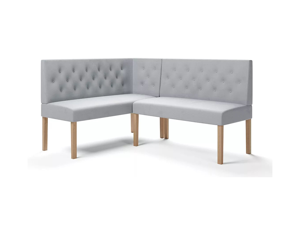 Rohová lavice Helena kombinuje elegantní vzhled, kvalitní materiály a vysoký komfort sezení. Její konstrukce je pevná a stabilní díky bukovým masivním nohám, které lze upravit v 11 různých odstínech moření. Sedací část s hloubkou 40 cm a tloušťkou 12 cm poskytuje maximální pohodlí, zatímco opěradlo o výšce 38 cm zajišťuje správnou podporu zad. Základní rozměr lavice je 160 × 140 cm, avšak lze ji vyrobit na míru podle individuálních požadavků. Kromě rozměrů si lze přizpůsobit i vzhled lavice díky široké nabídce čalounění, která obsahuje přibližně 100 druhů látek.