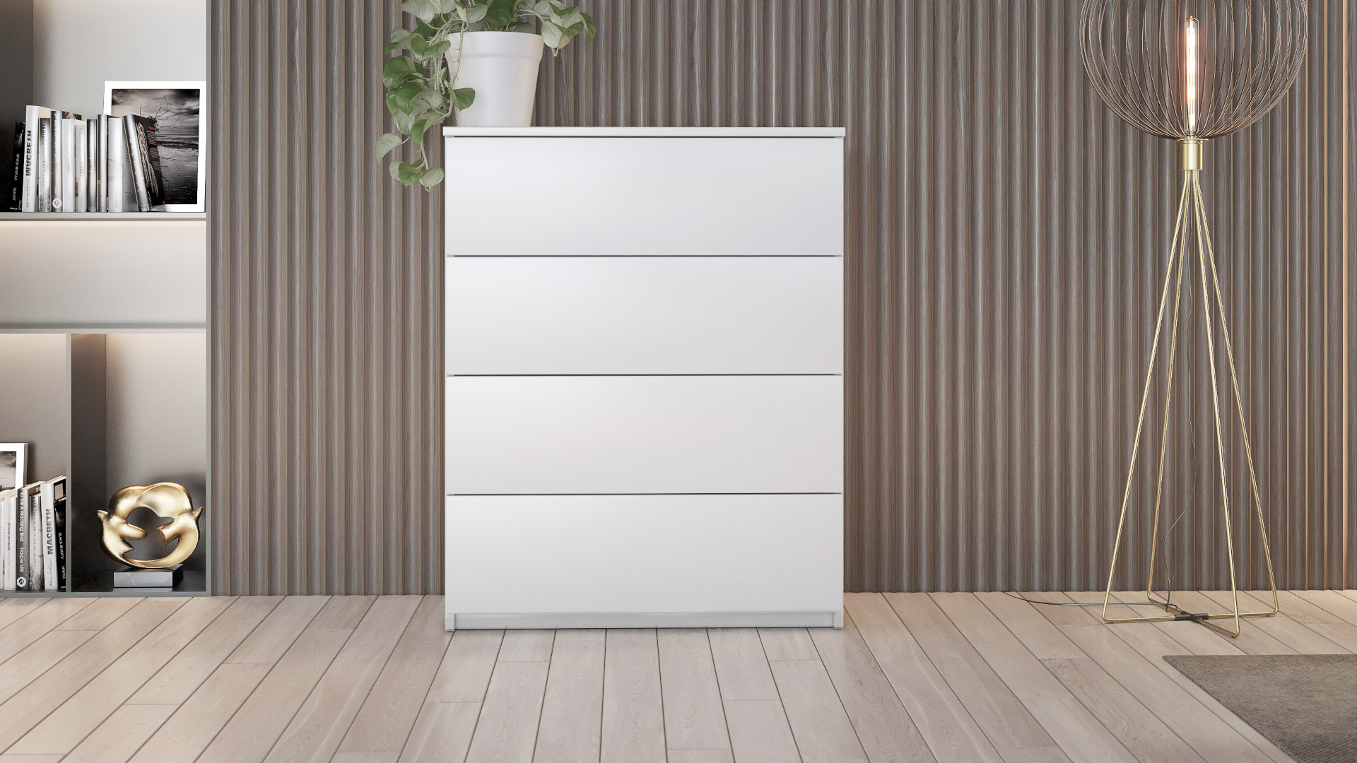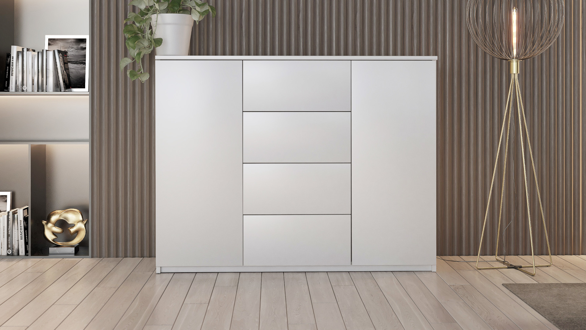 Komoda se 4 šuplíky a 2 dvířky: výška 100 cm, šířka 130, 150 nebo 180 cm, hloubka 40 cm.
