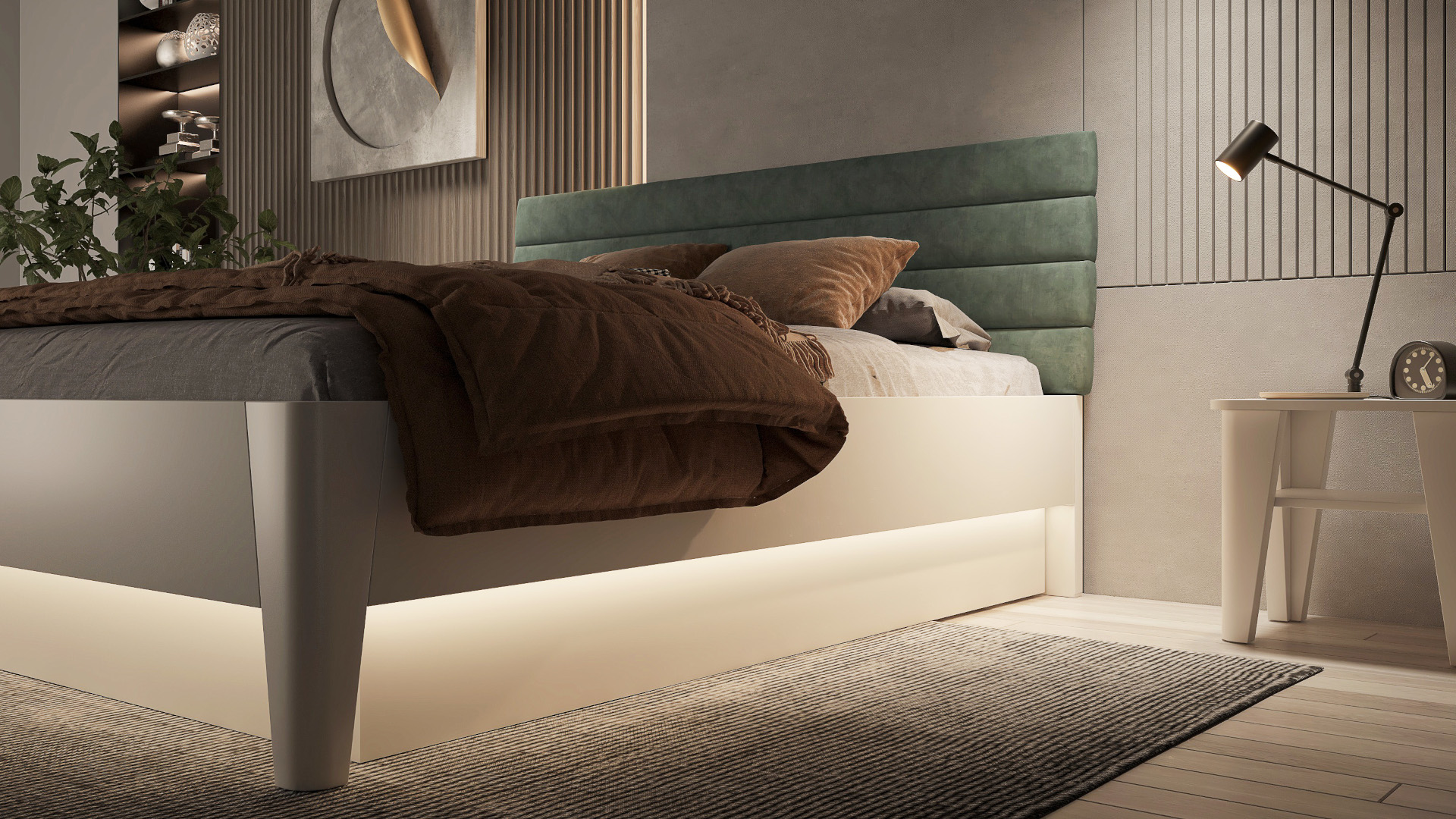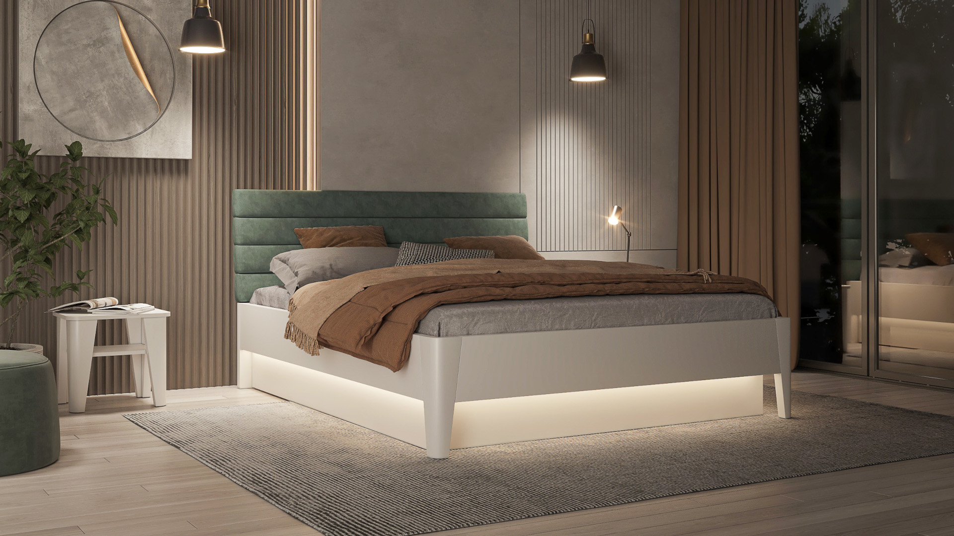 Postel lze doplnit například dekorativním LED osvětlením nebo bočními úložnými prostory.