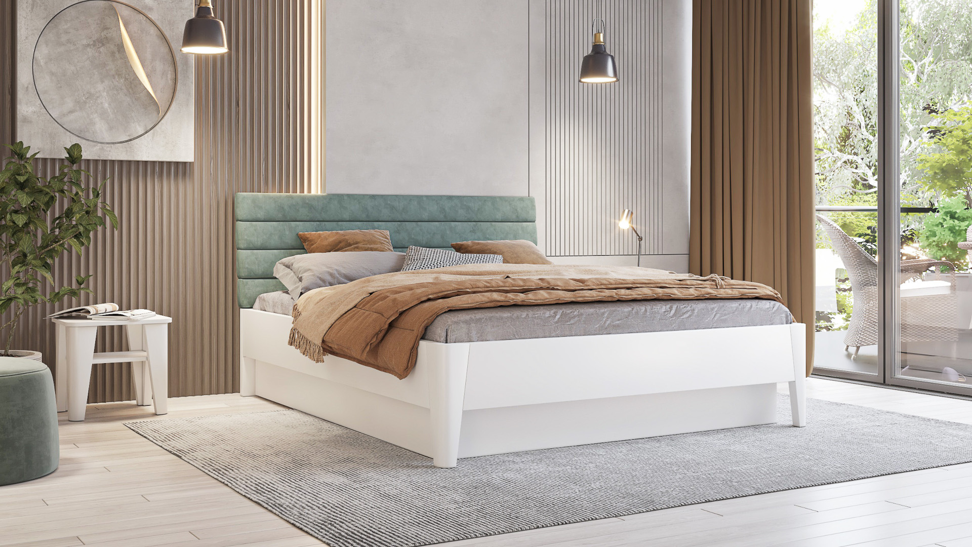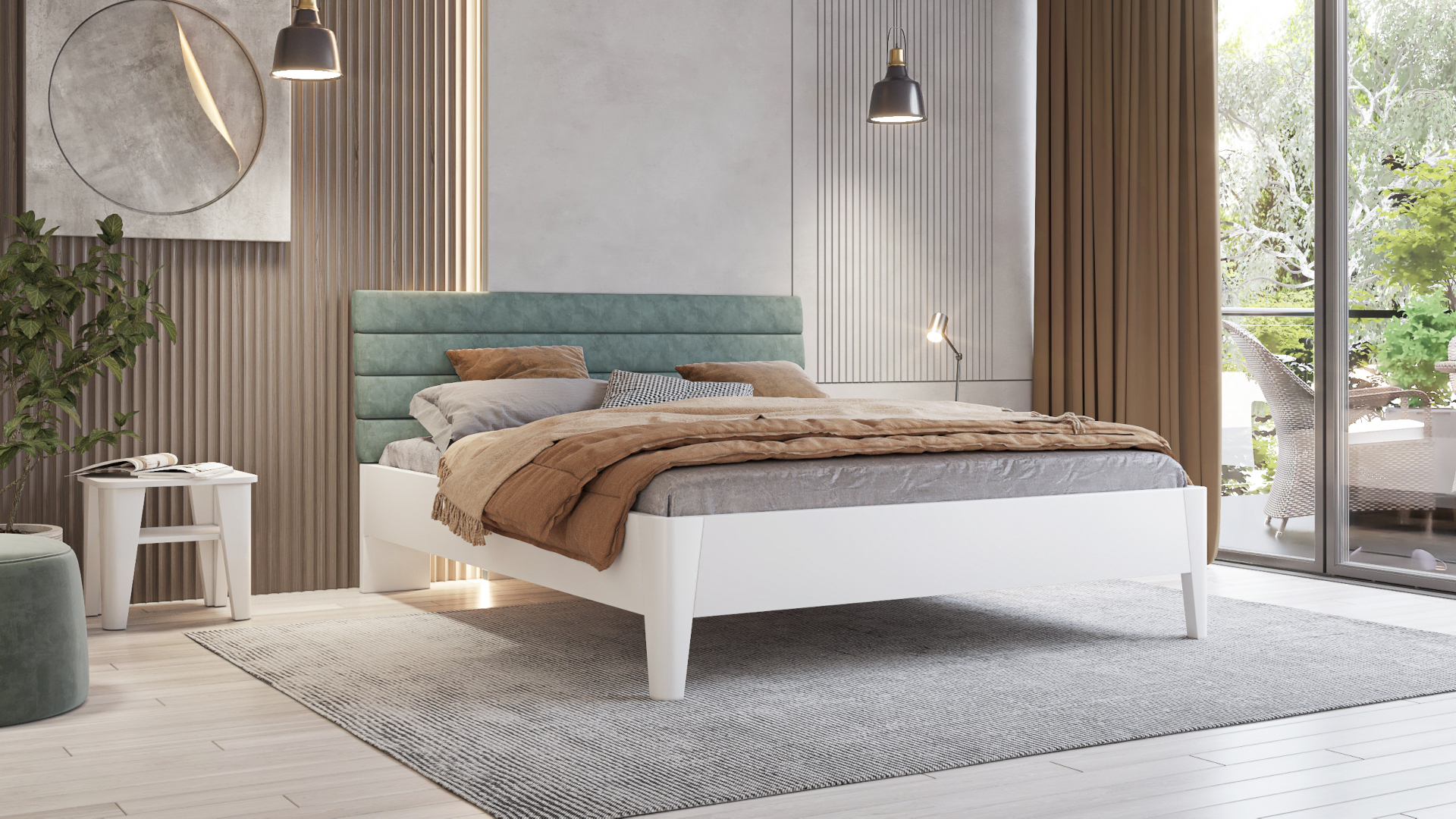 - Postel ve třech rozměrech: 200 × 140 cm, 200 × 160 cm, 200 × 180 cm.