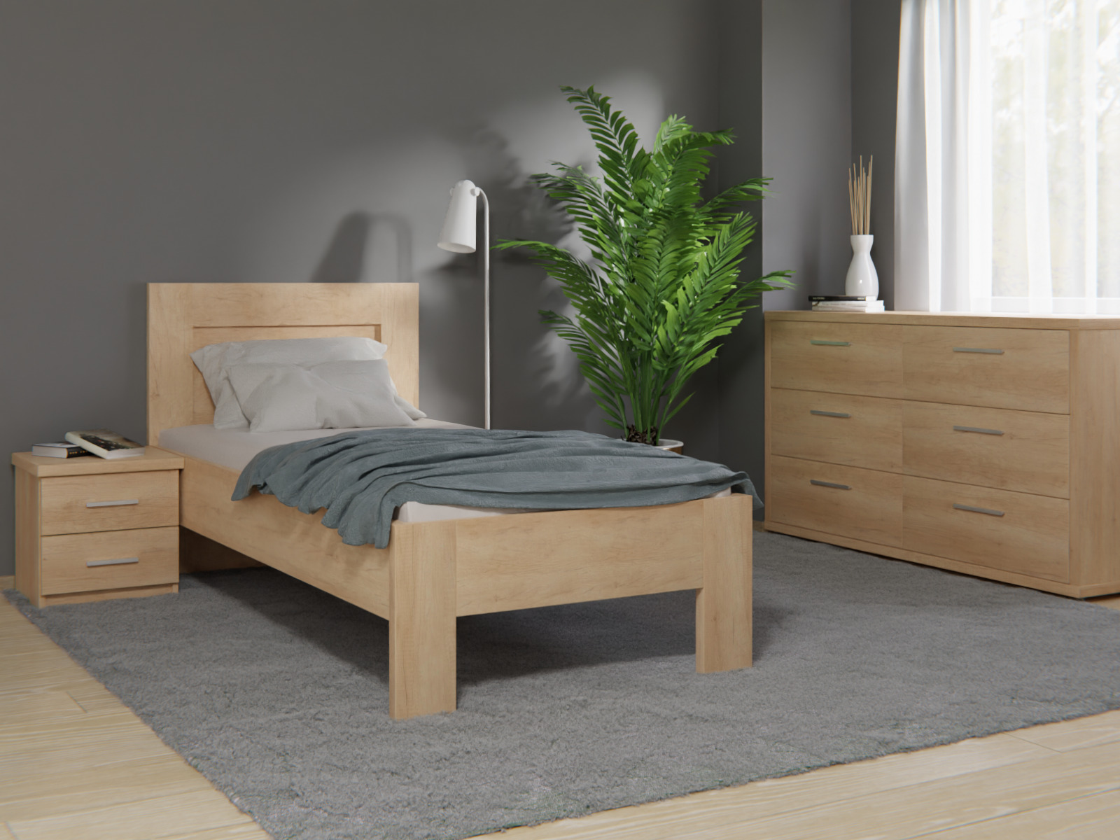 Postel Pohoda je vysoce pevné a stabilní lůžko, které kombinuje moderní design s kvalitními materiály. Vyrobena je z odolného lamina o síle 36 a 18 mm, což jí dodává mimořádnou pevnost a dlouhou životnost. ABS hrany o tloušťce 2 mm zajišťují dodatečnou ochranu proti poškození. Postel je dostupná v široké škále dekorů, včetně oblíbeného dubu Nebraska, a lze ji přizpůsobit díky možnosti atypických rozměrů. K dispozici je také varianta s praktickým úložným prostorem.