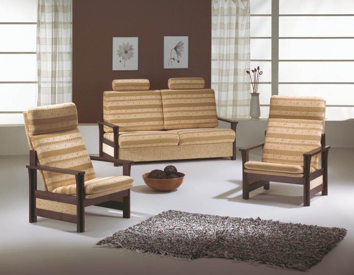 Sedací souprava Eva je moderní čalouněný nábytek kombinující elegantní linie s dřevěnými prvky. Sedáky a opěráky jsou vyrobeny z tvarovaných polyuretanových pěn, přičemž pružnost sedáku zajišťují vlnité pružiny