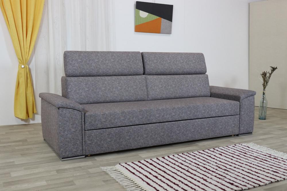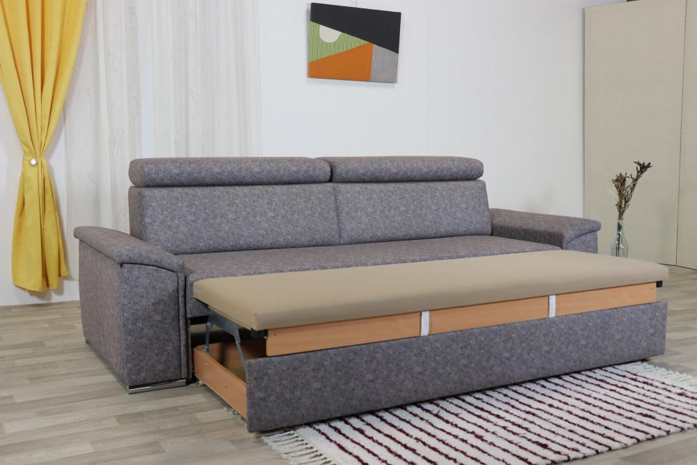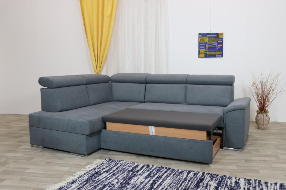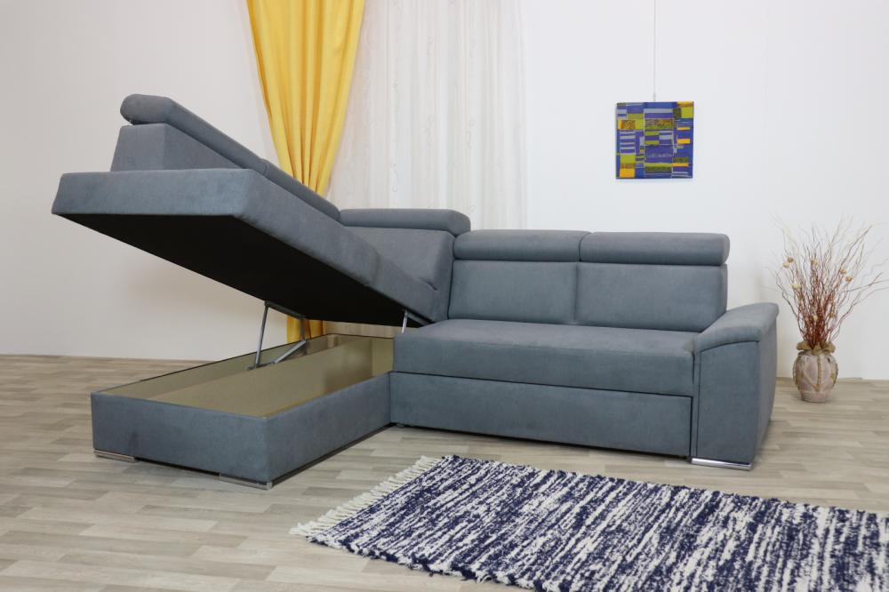 Moderní čalouněná sedací souprava, se sklápěcími opěrky hlavy, rozkladem a úložným prostorem.