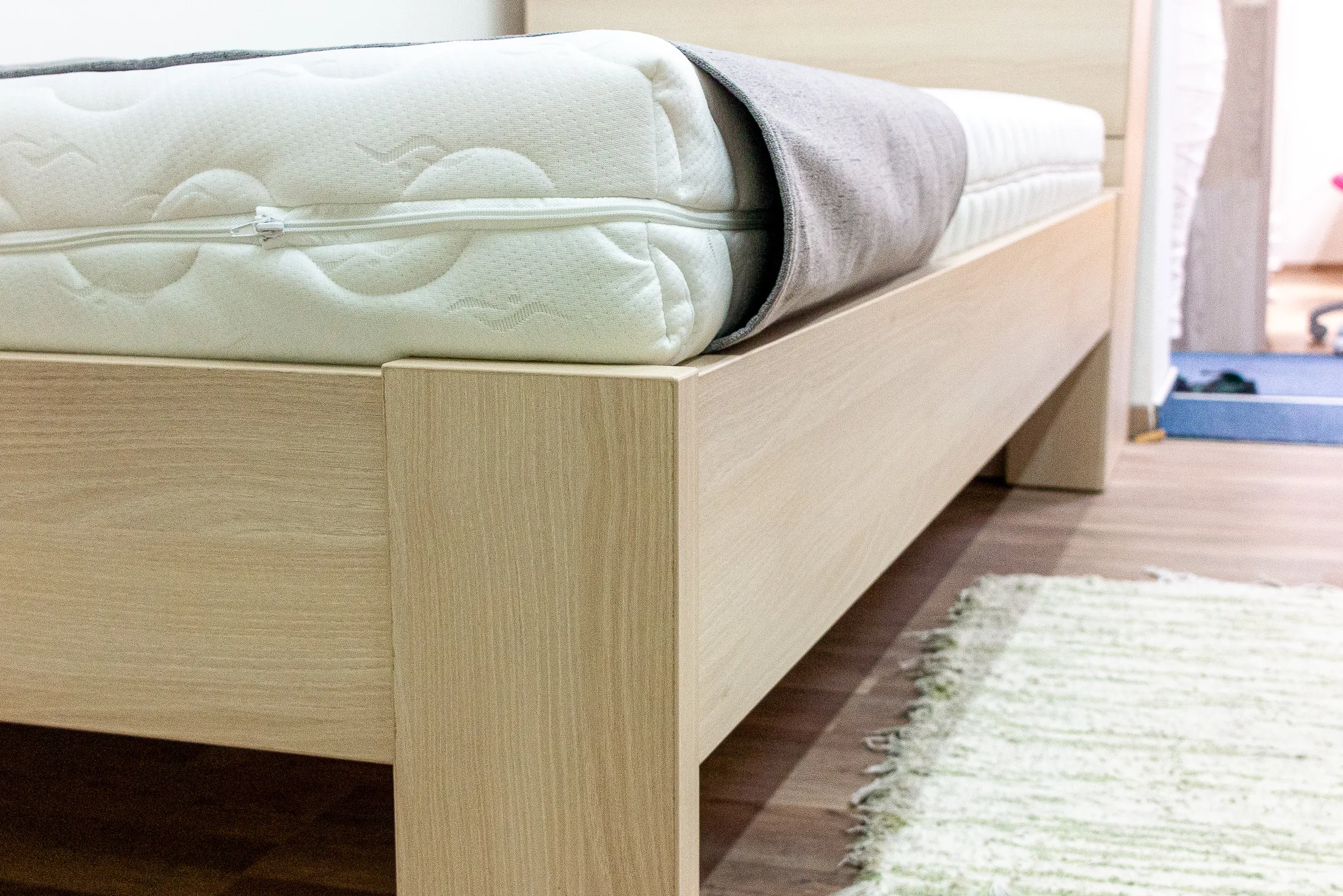 Integrovaný peřináč – prostorný úložný prostor přístupný výklopem roštu, ideální pro uschování lůžkovin, dek nebo hraček.
